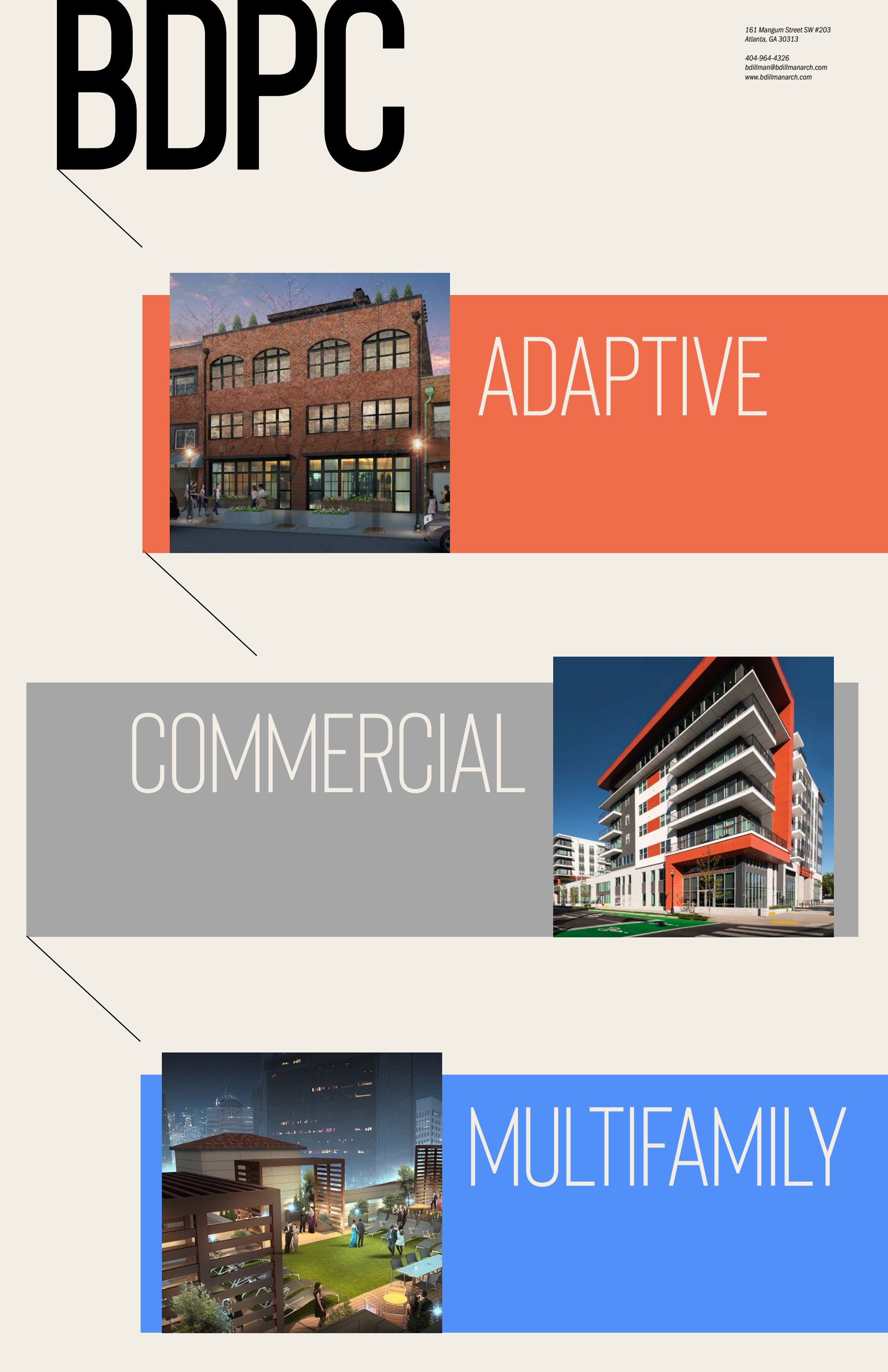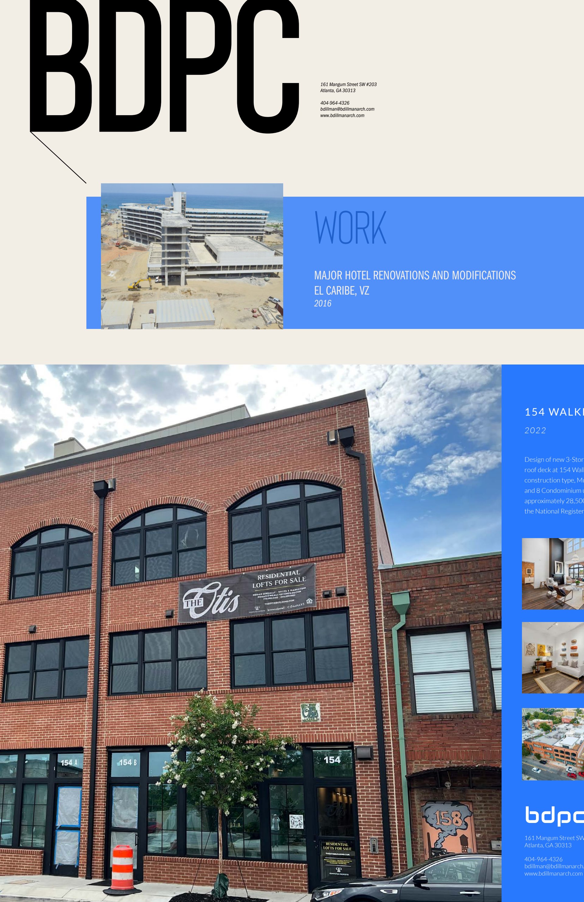 Remote freelance work for an architect based out of Atlanta, Georgia. His original design work was dull and he needed a little magic and color to make his firm and architectural projects stand out and proceeded to develop visual and art direction ideas.