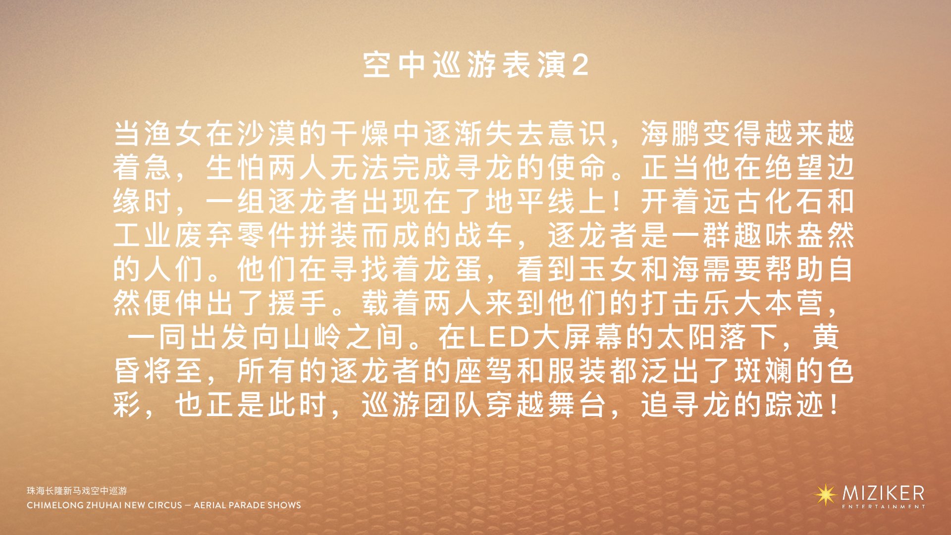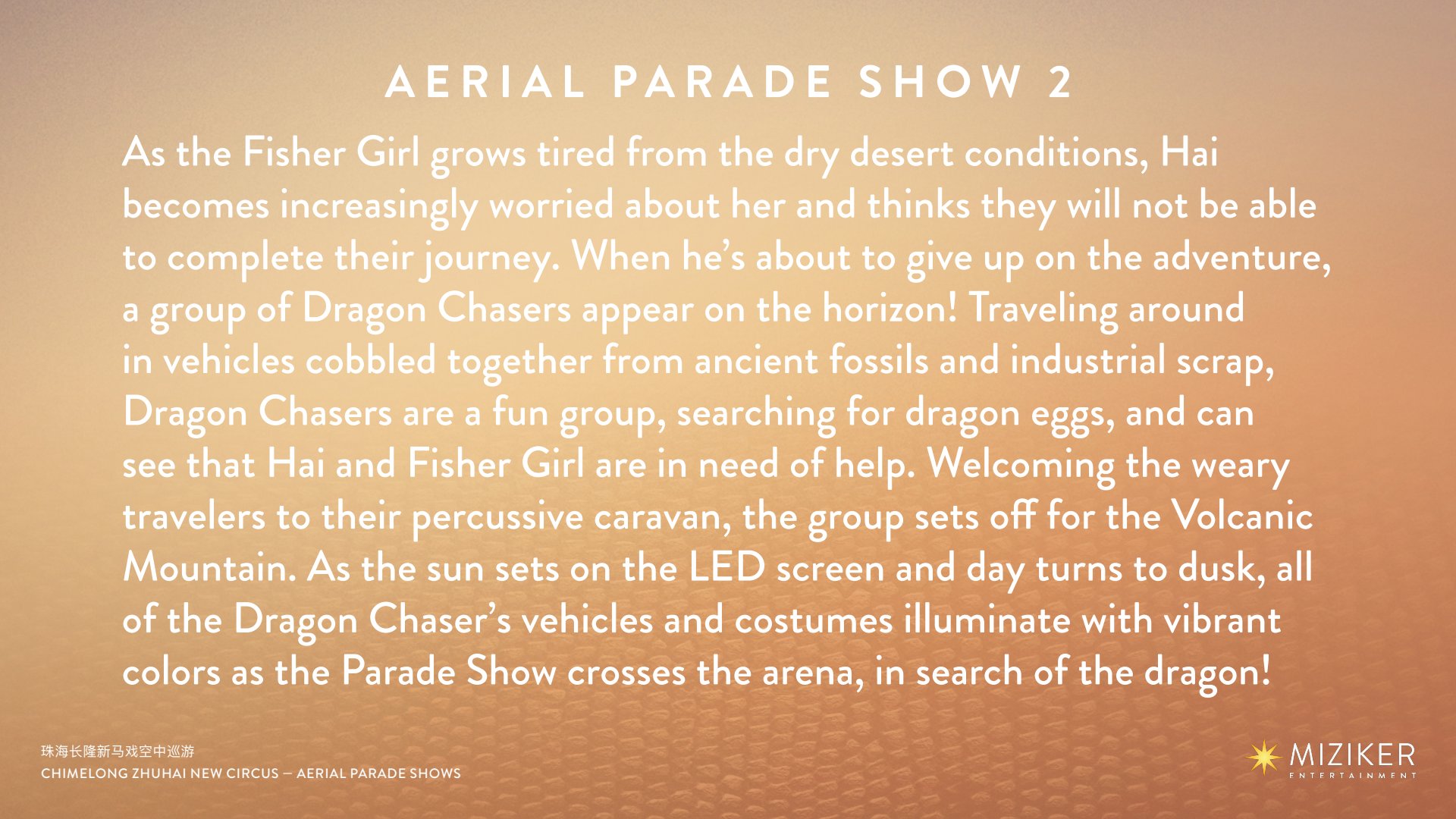 I was brought in by Miziker Entertainment to see how I can improve upon the original presentations which were very scattered and lacked structure and moods, storytelling of a story.
