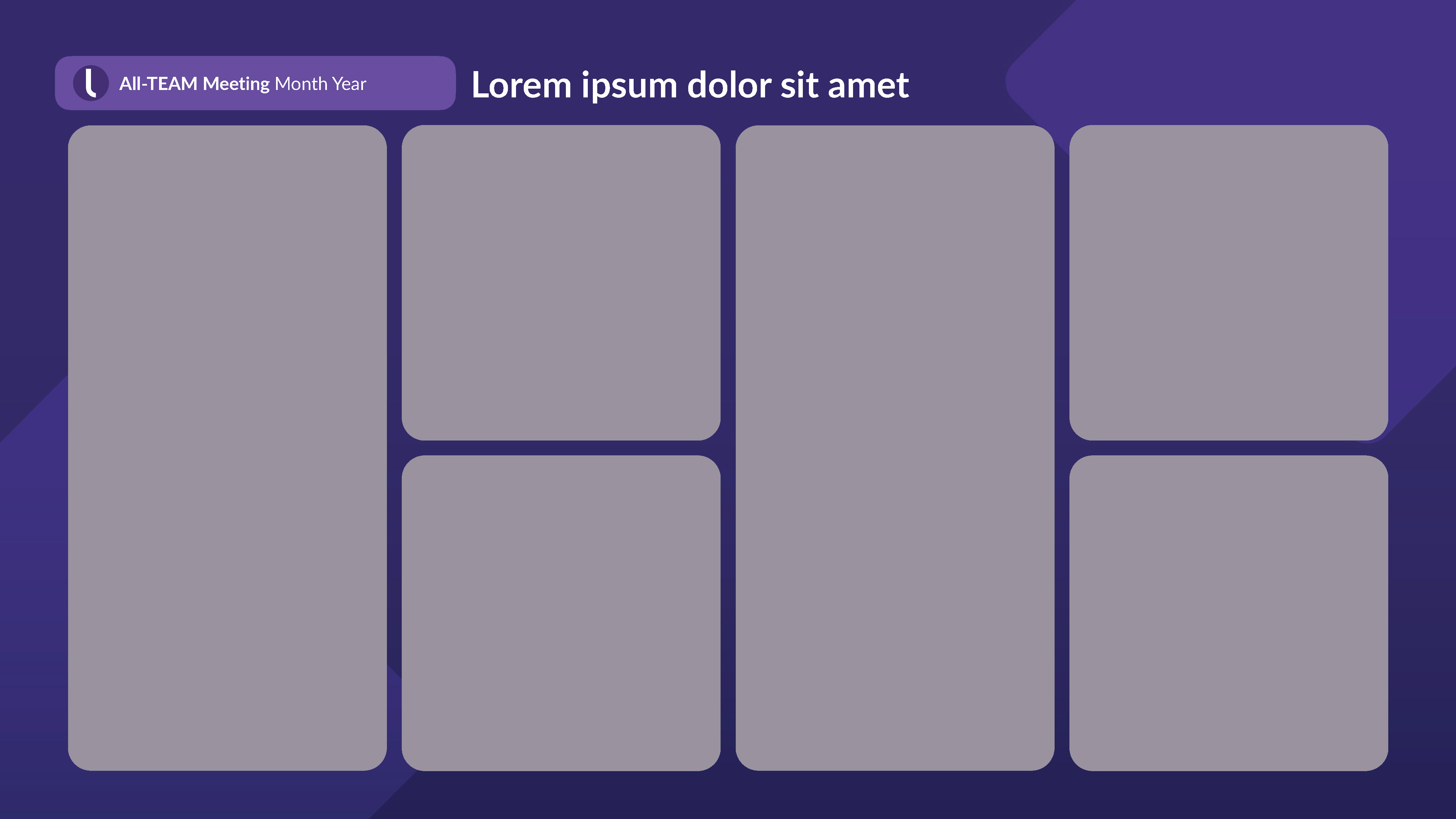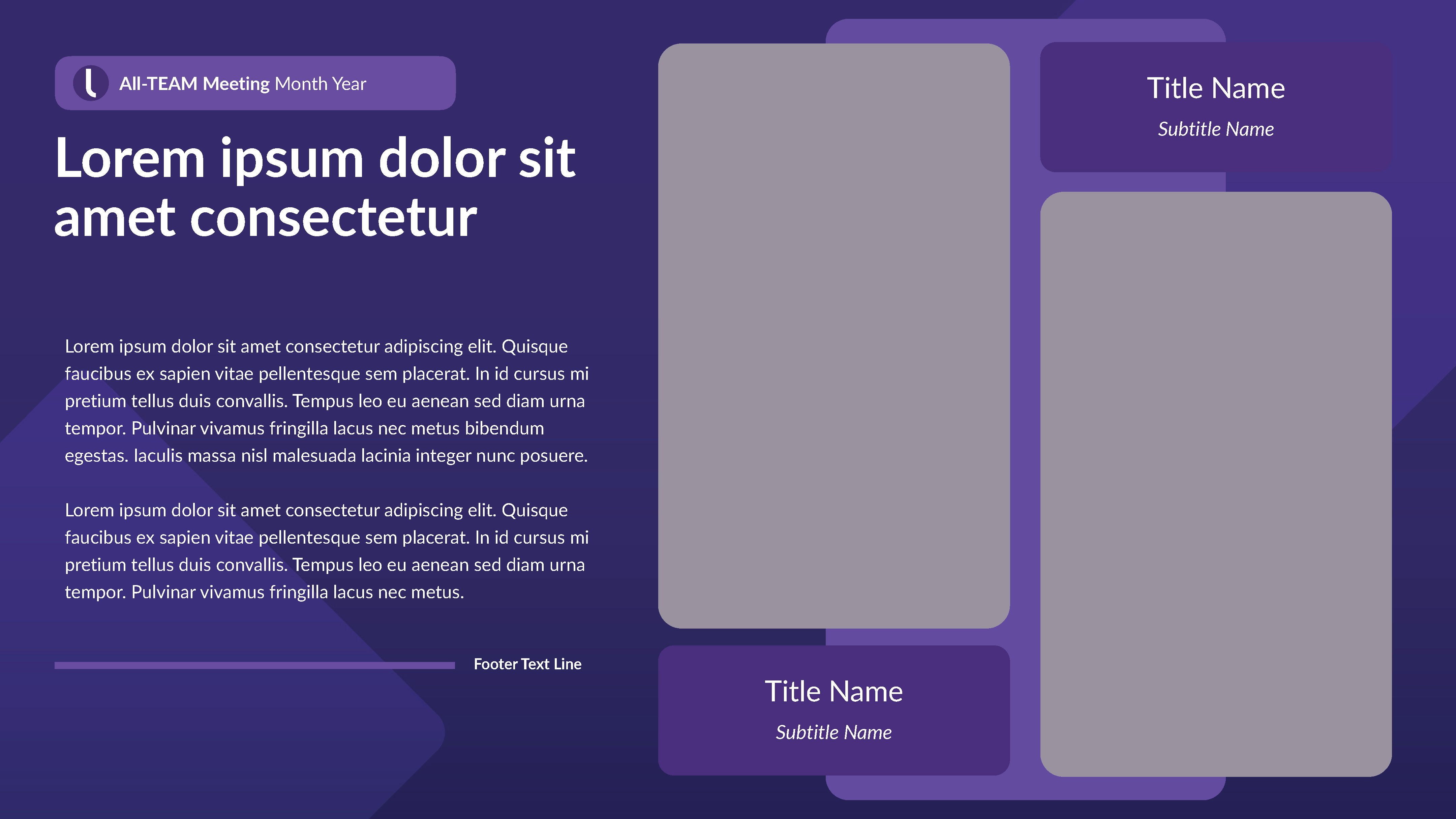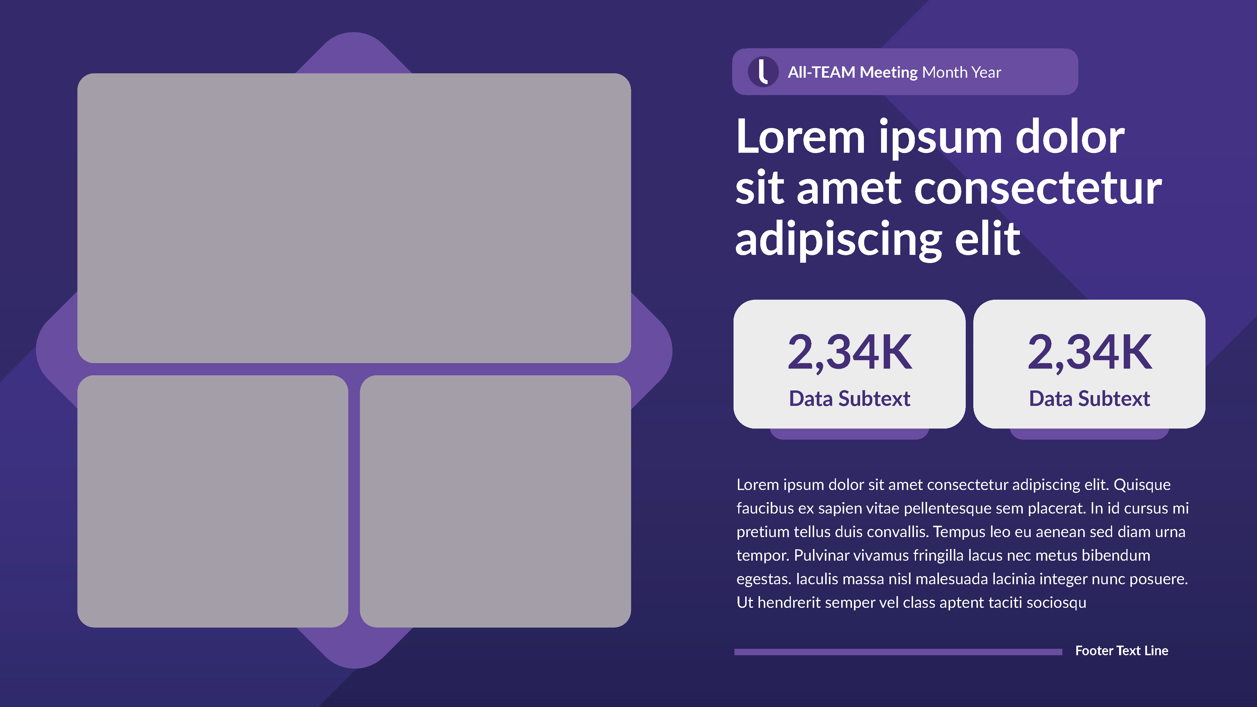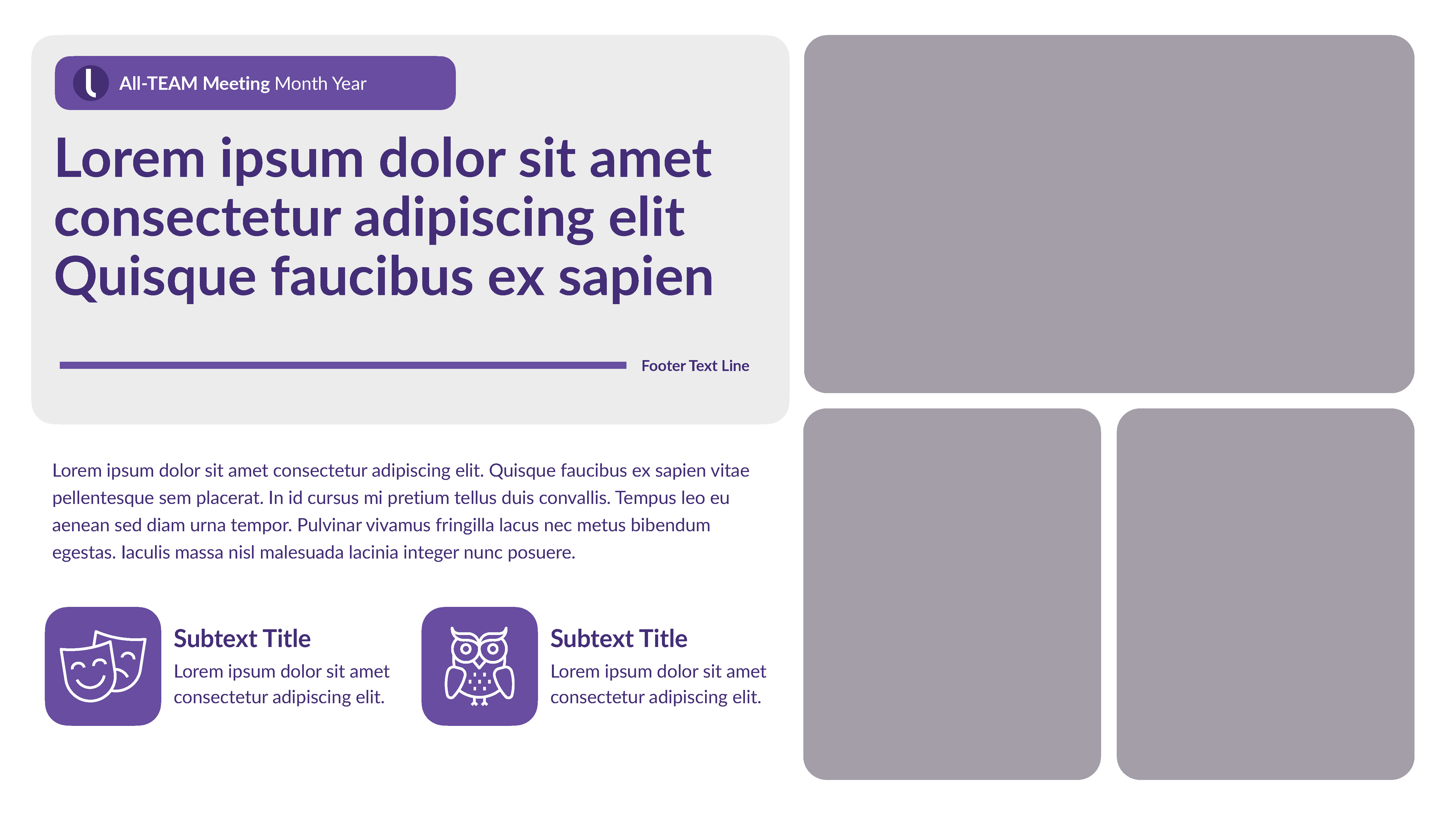 Internal Keynote-PowerPoint template for wide departmental use. I designed a ‘grape’ version intermixed with a ‘light’ version to maximize visual communication and theme variation choices.
