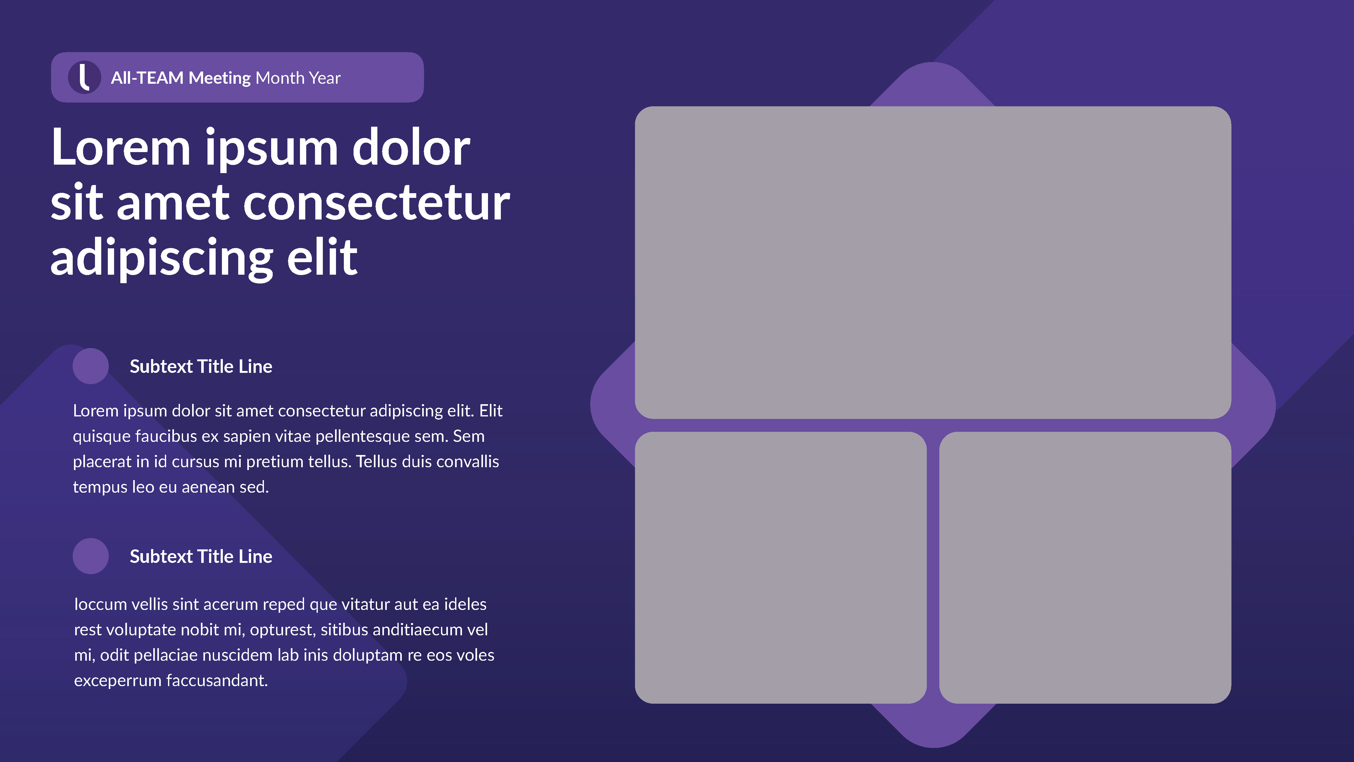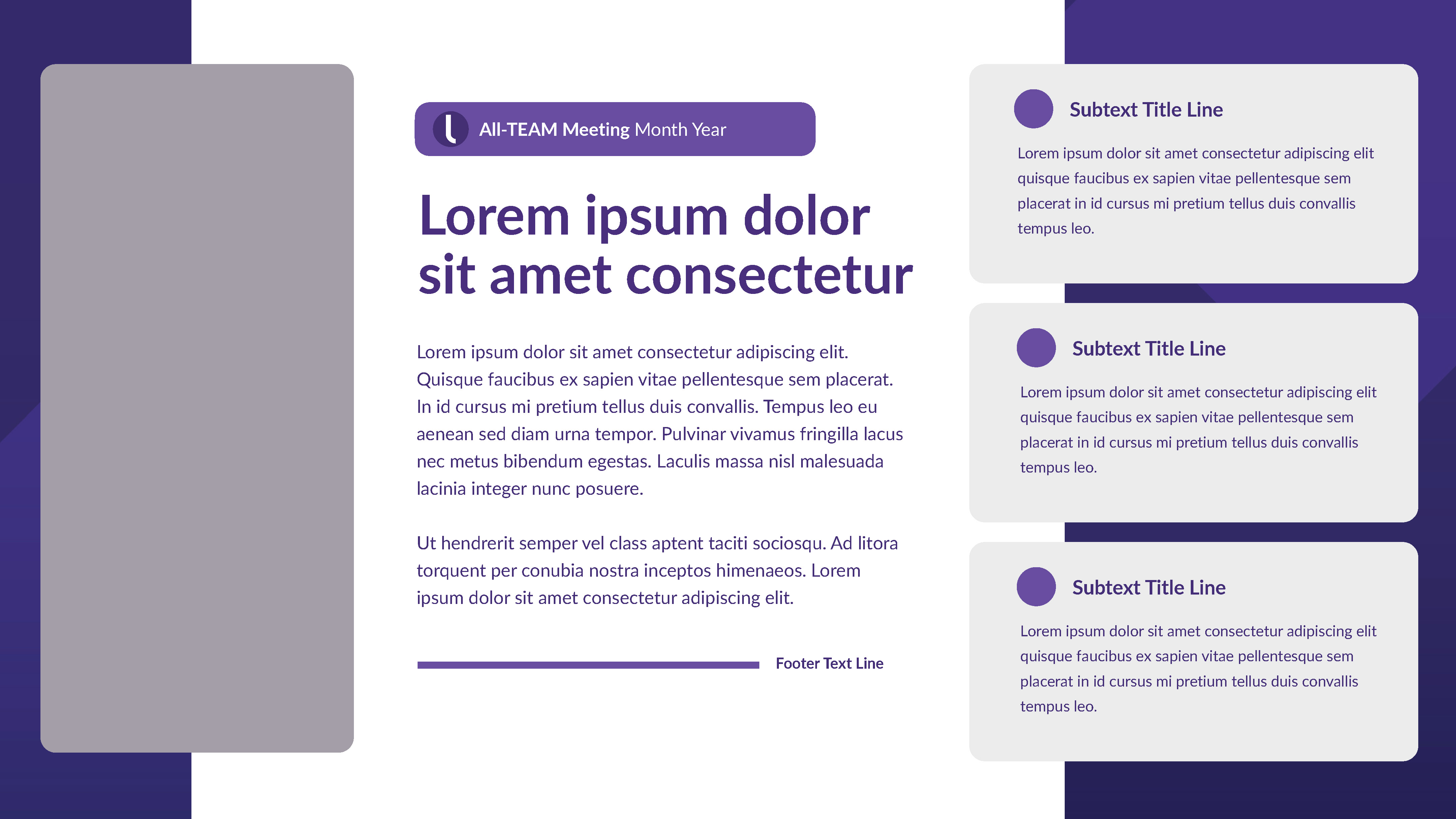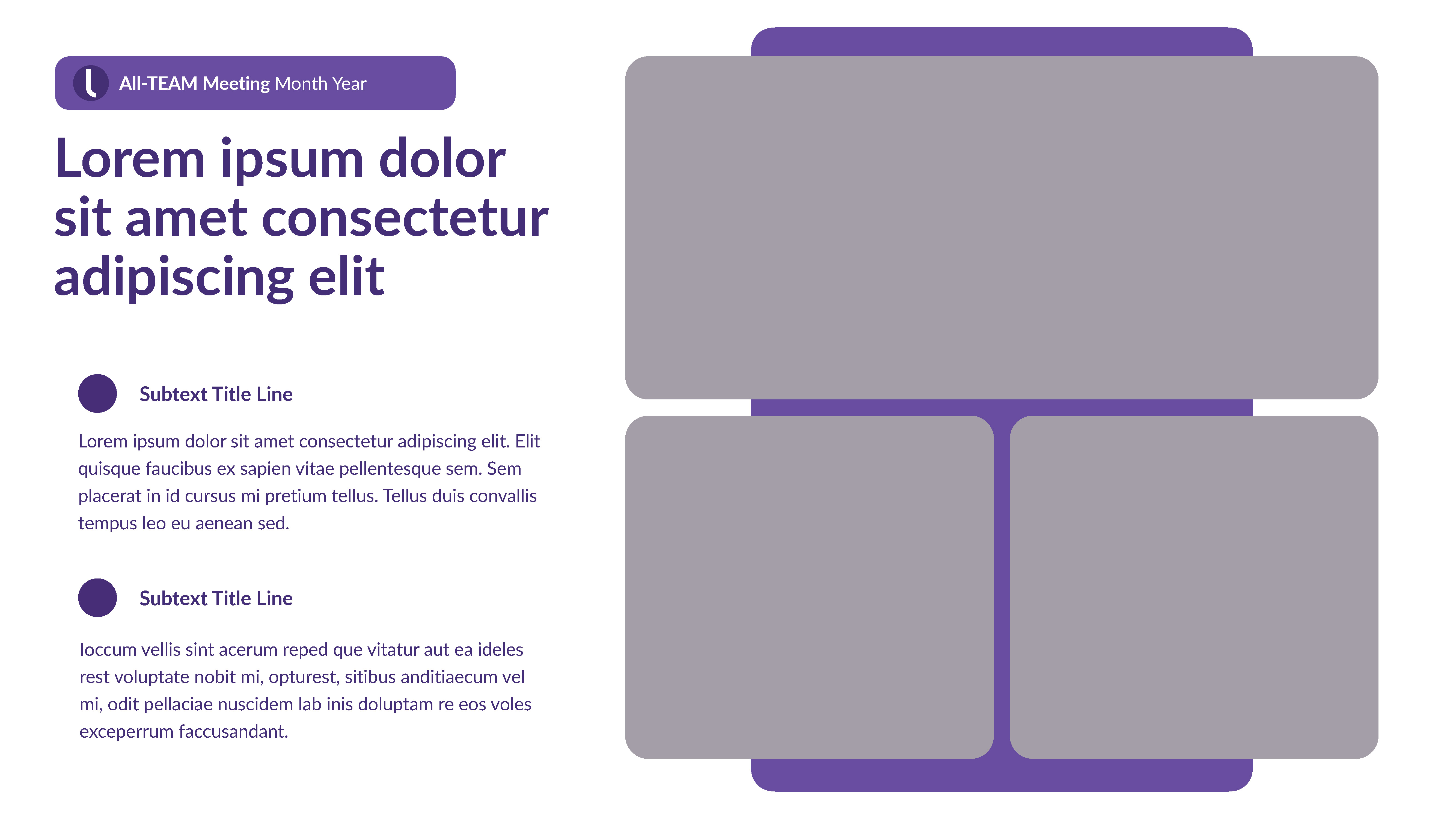 Internal Keynote-PowerPoint template for wide departmental use. I designed a ‘grape’ version intermixed with a ‘light’ version to maximize visual communication and theme variation choices.