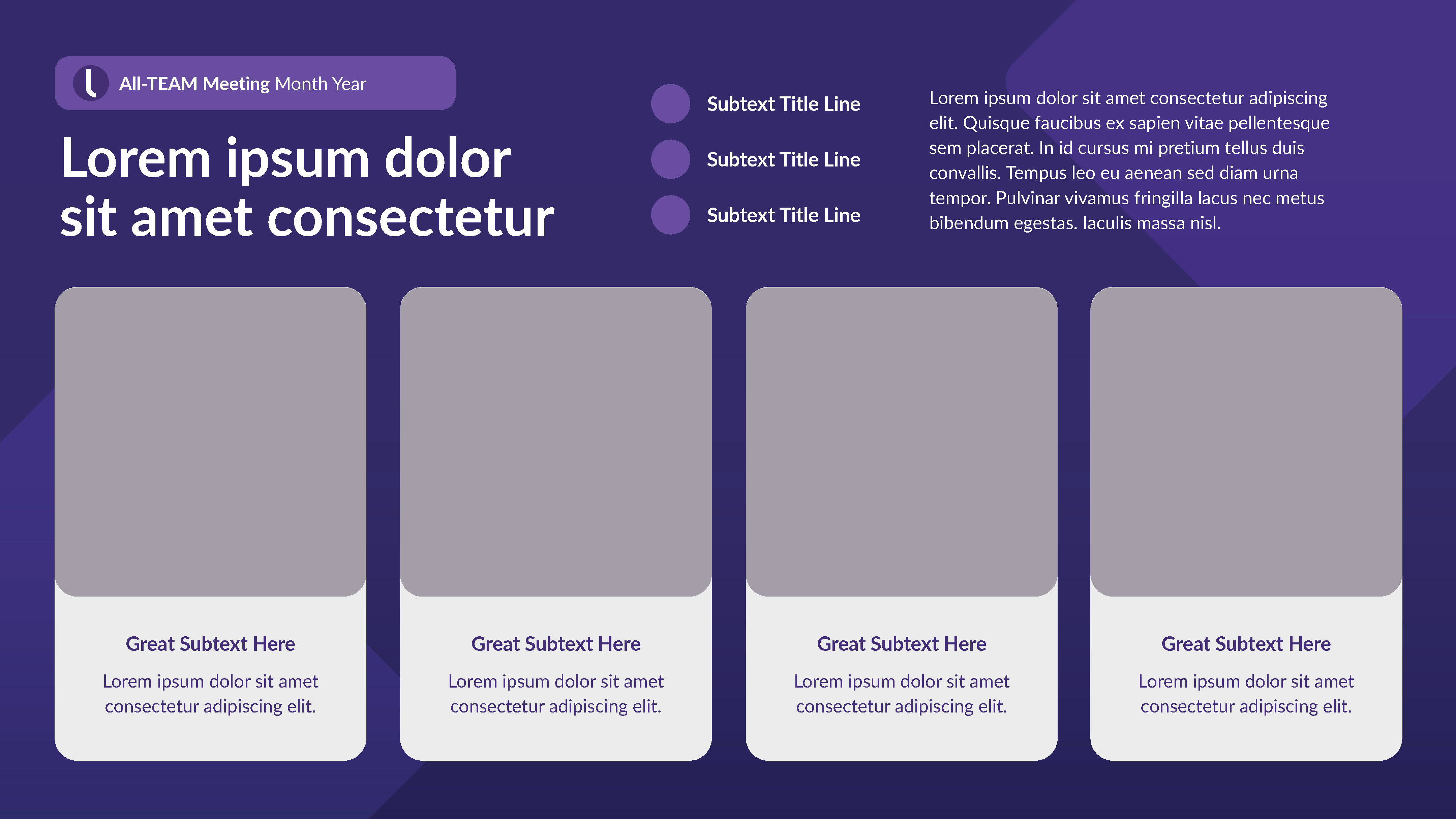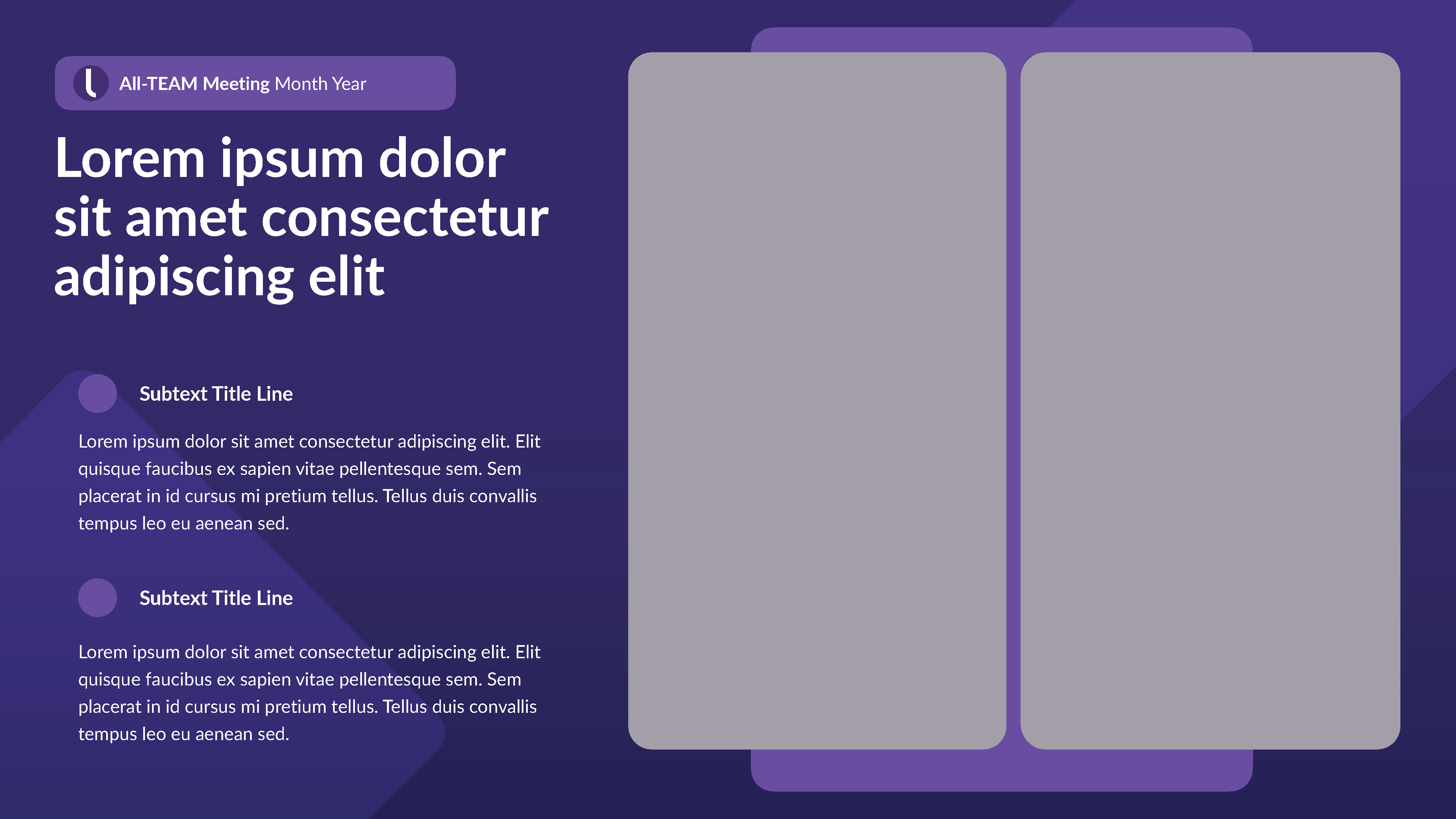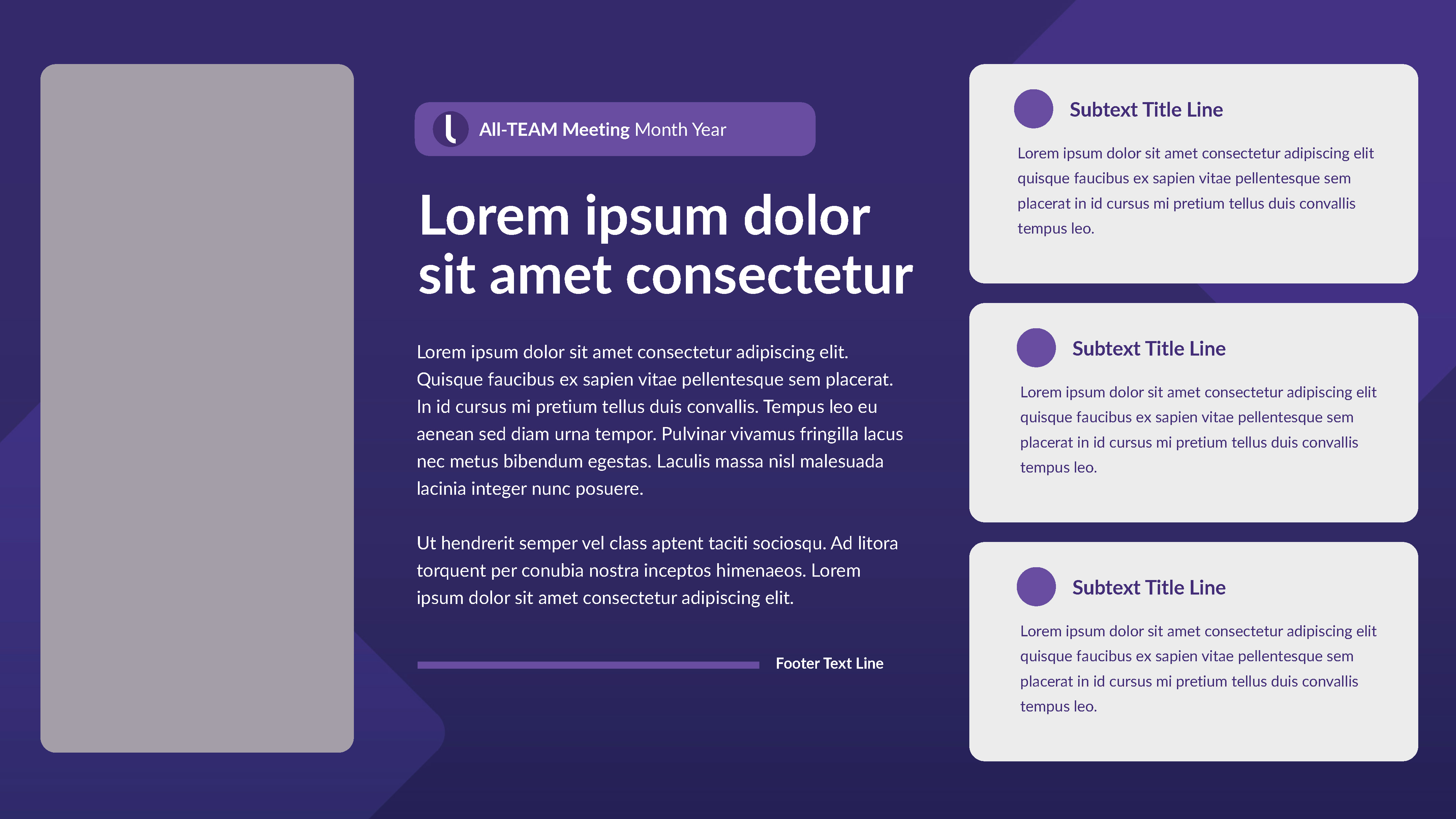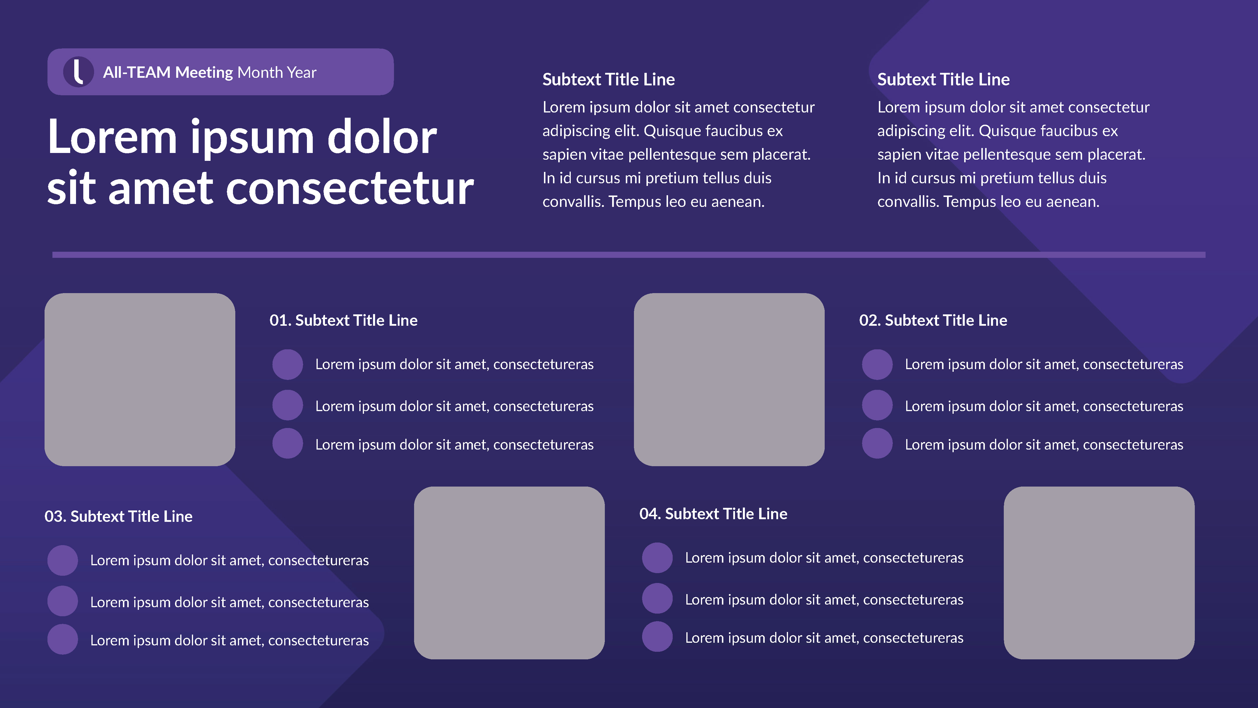 Internal Keynote-PowerPoint template for wide departmental use. I designed a ‘grape’ version intermixed with a ‘light’ version to maximize visual communication and theme variation choices.