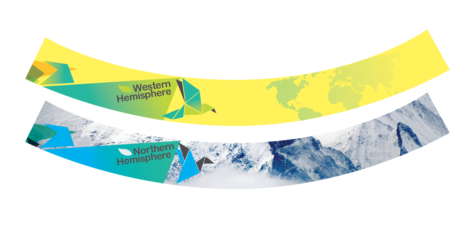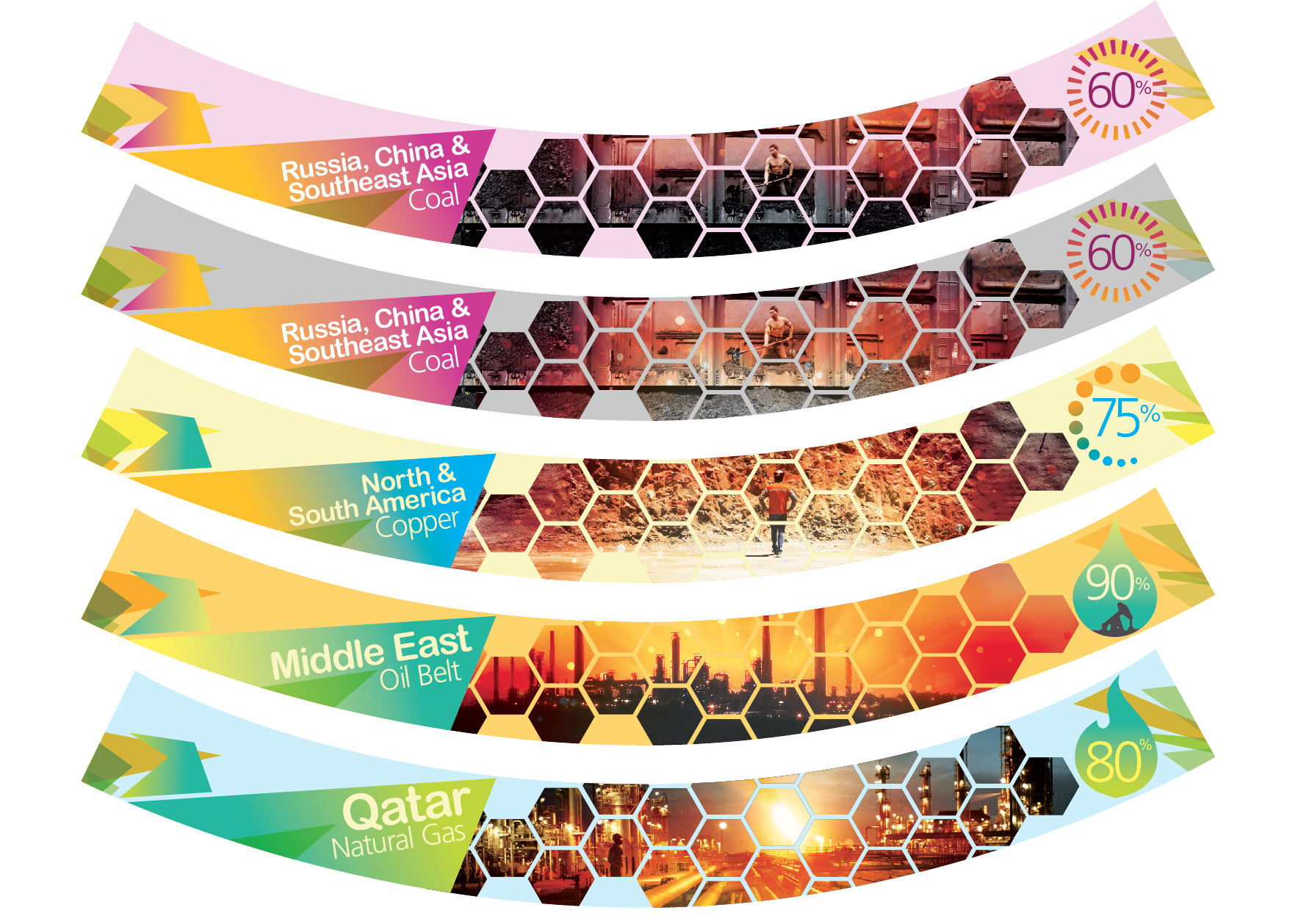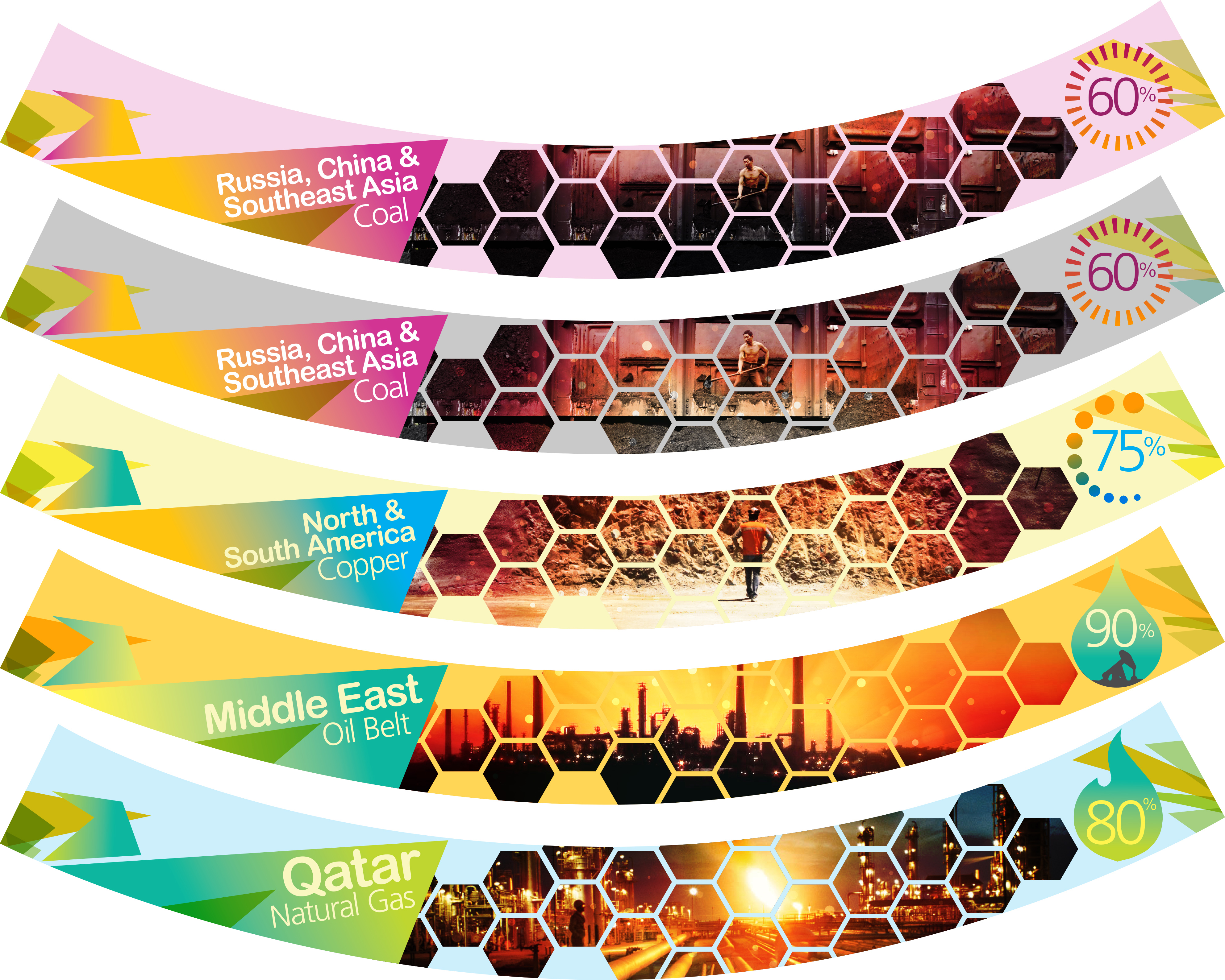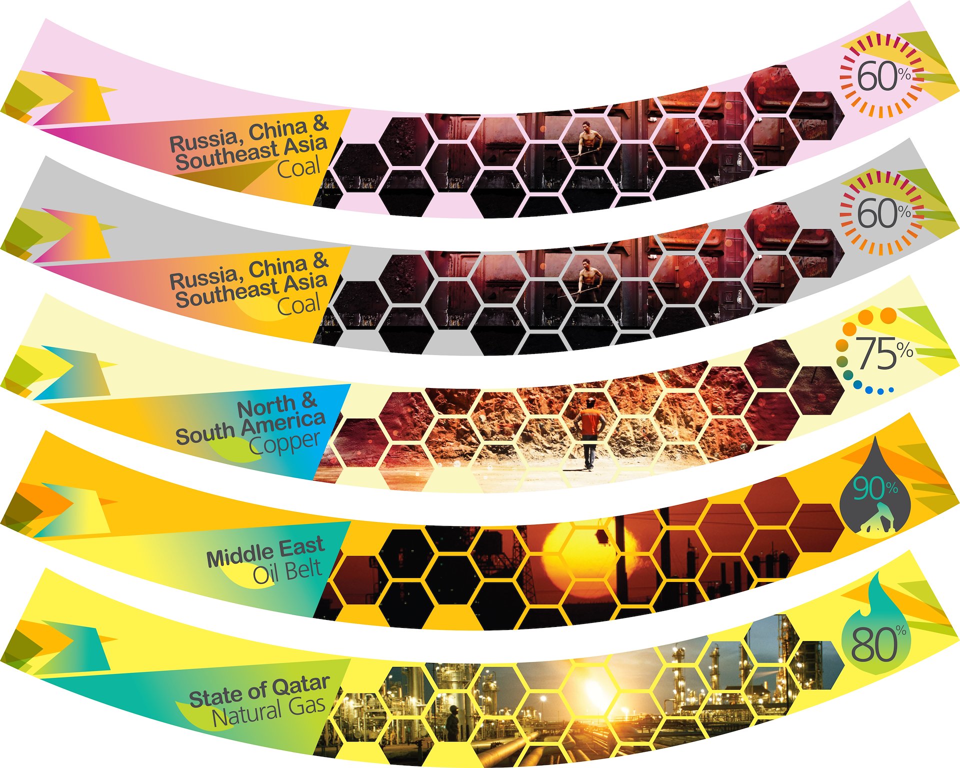 These curved panels are backlit, and they sit in the base of a large revolving LED Planet which is the centerpiece of the exhibit, in between these four panels that go around the planet's base are interactive monitors explaining these regions resources. All kind of energy and green tech content.
