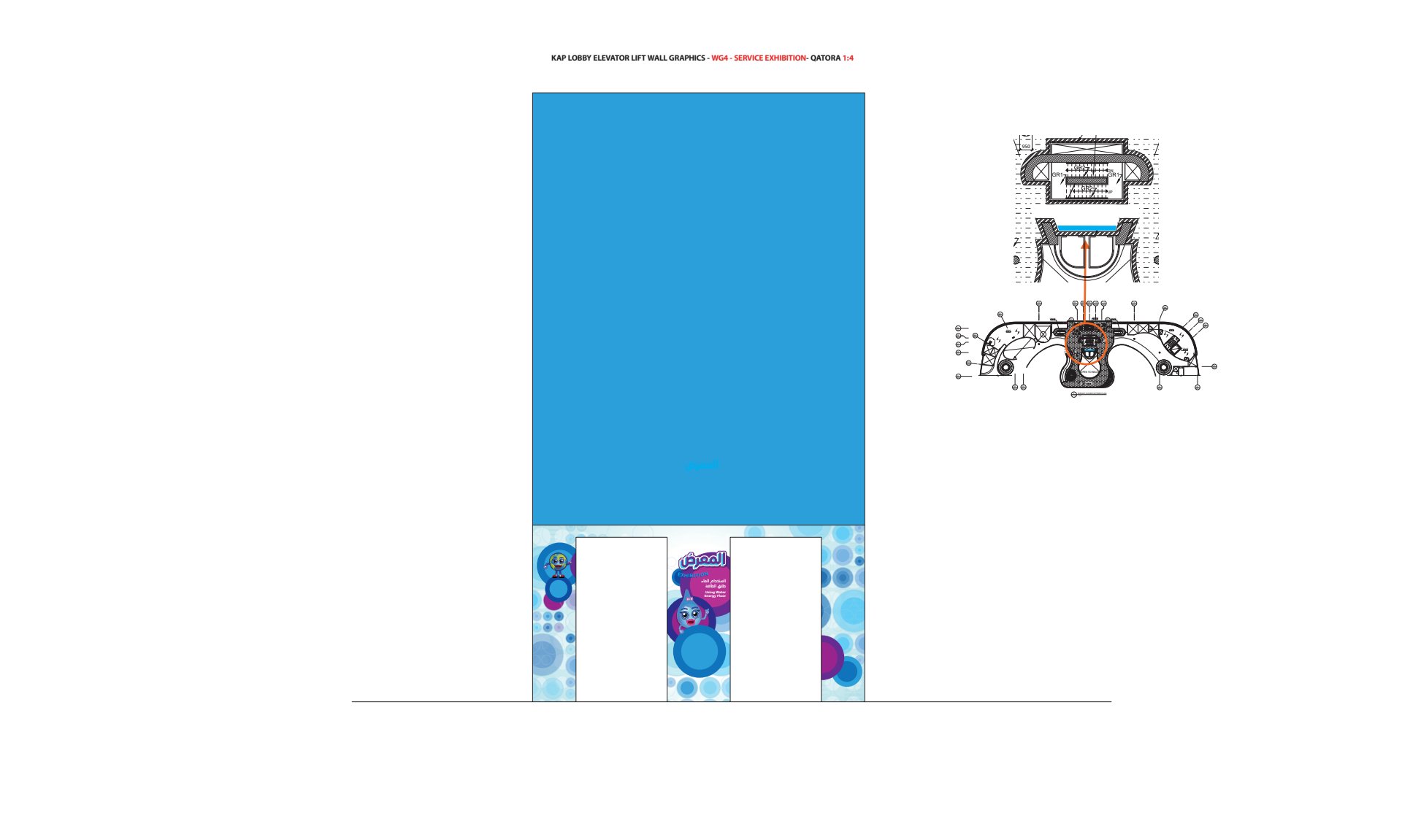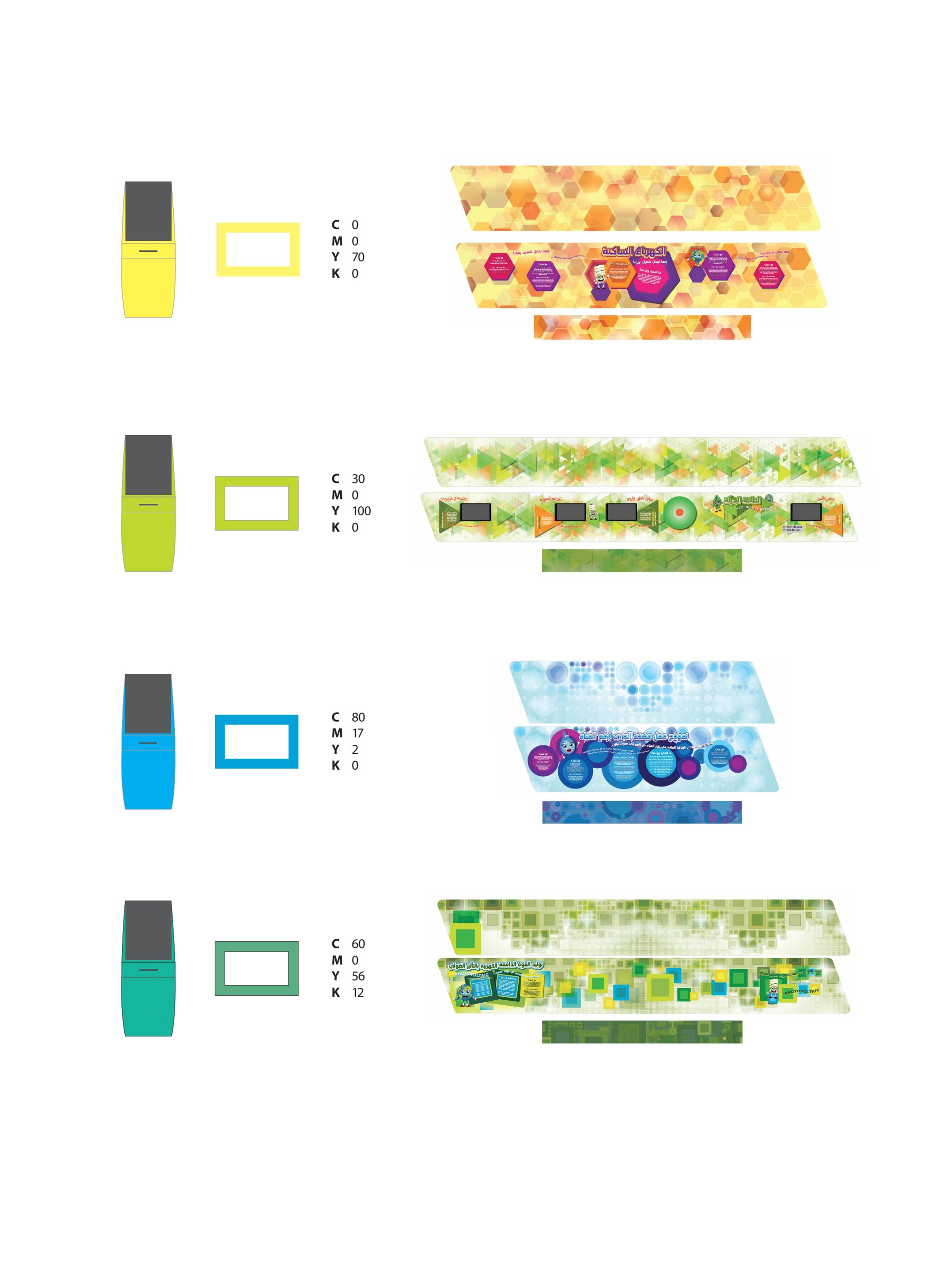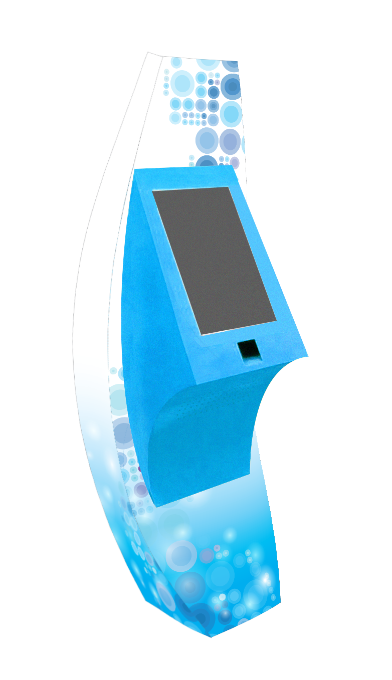 Graphics visualization based on the fabricated kiosk photograph themed in an aquatic ‘Qatora’ color and graphics scheme.