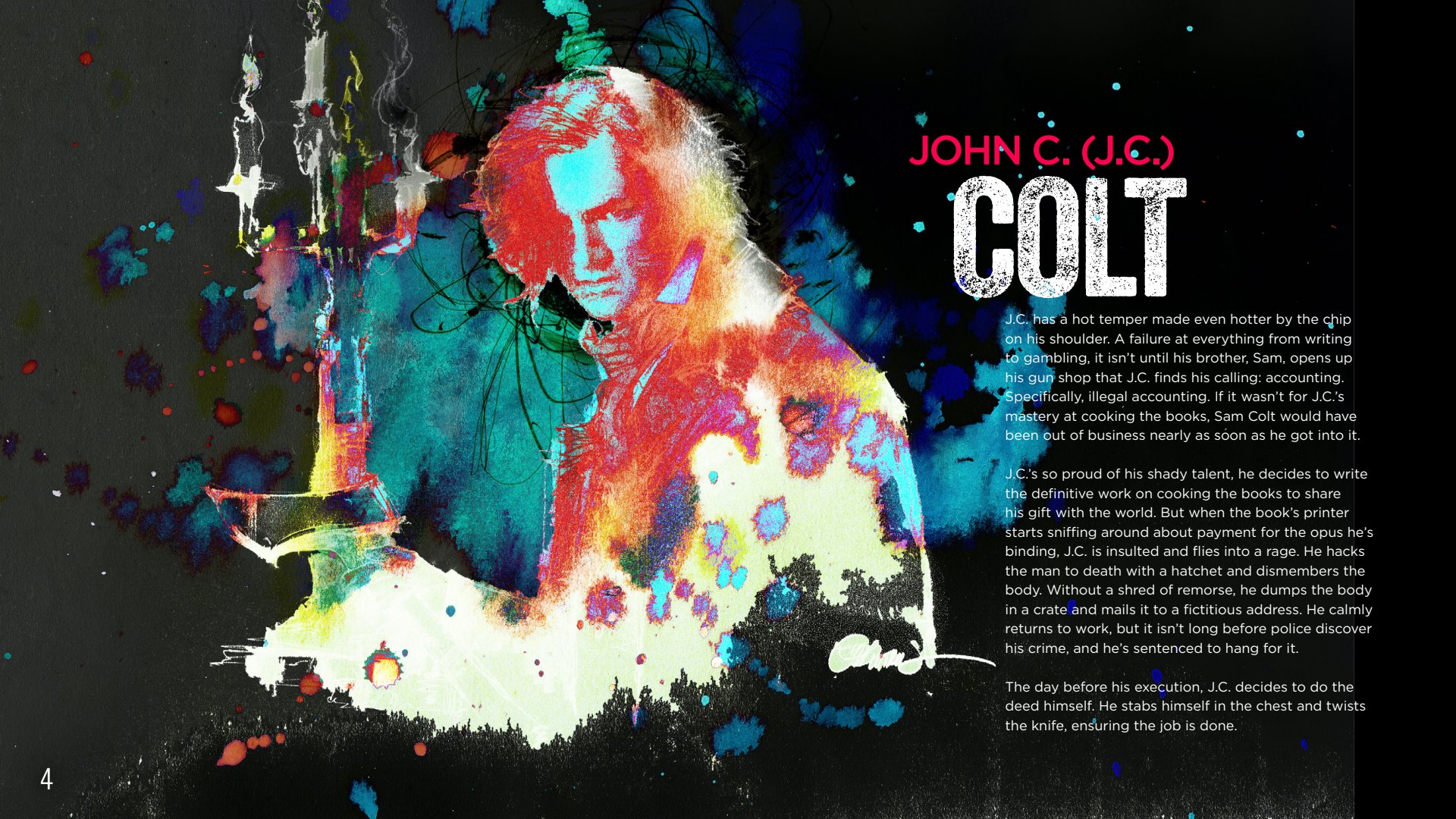 I created this Western inspired graphic layout drawing inspiration from the vintage TV 1970's ‘Night Gallery’ TV show. This is the second phase of sharpening the art direction of the presentation and TV show graphics. Photographs were rendered by hand by an illustrator and I created different artistic graphic explorations for the project, they really are like art pieces, that was my approach.