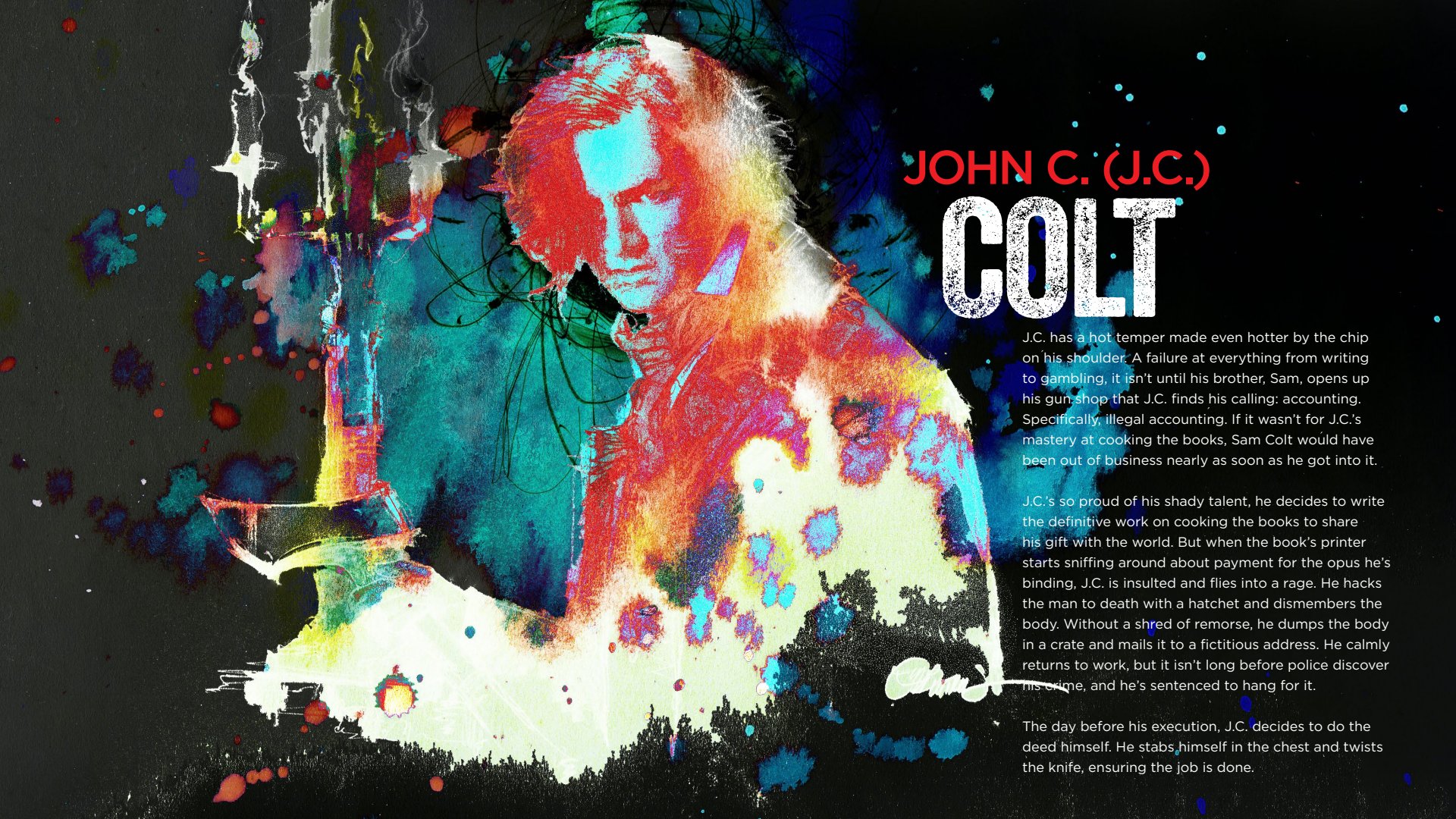 I approached this project using Photoshop CC to ‘paint with pixels’ using different textures and combined and added effects, modified, and mixed to create compelling visual graphics to represent the character’s personalities and even discussions between characters.