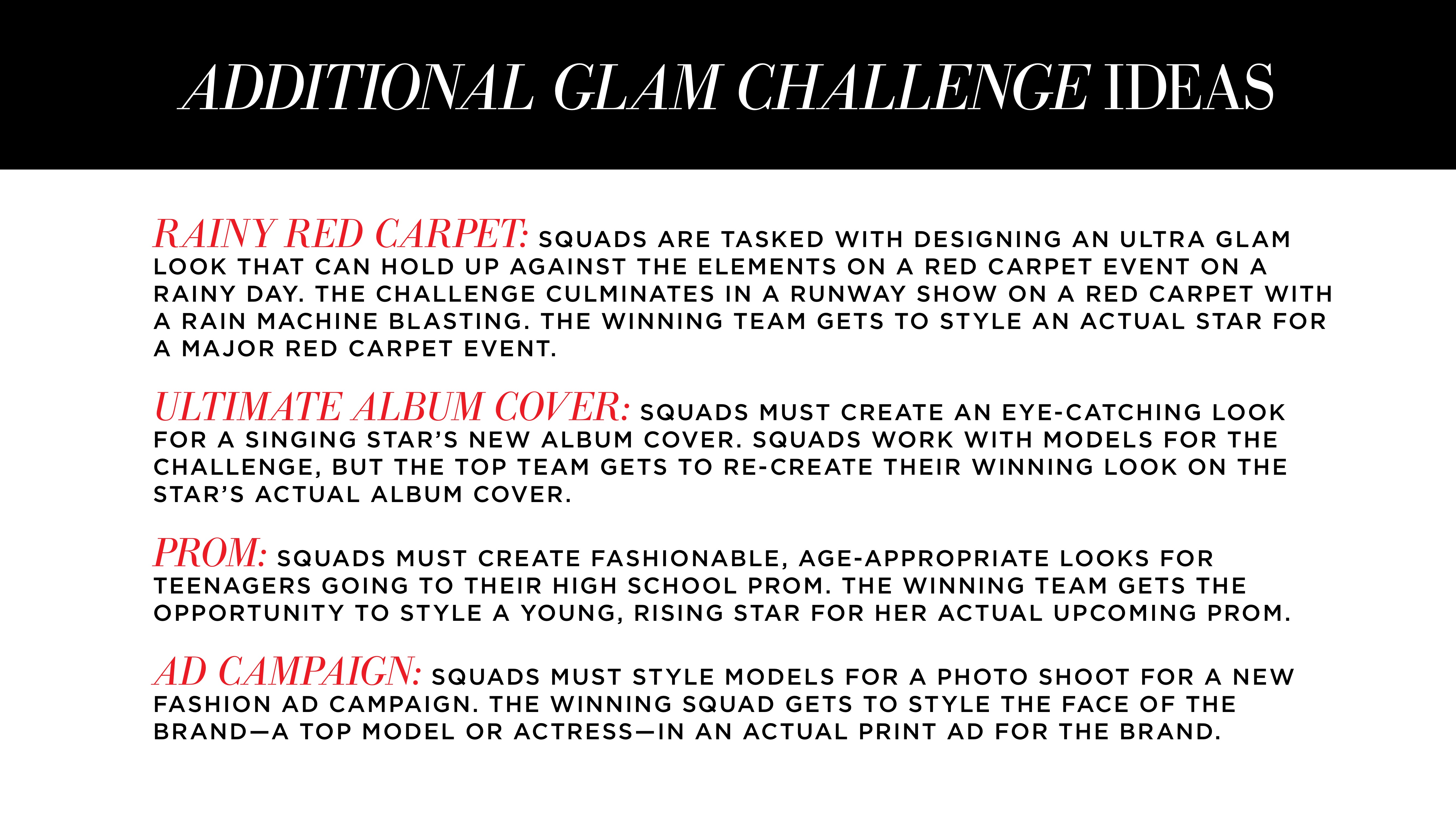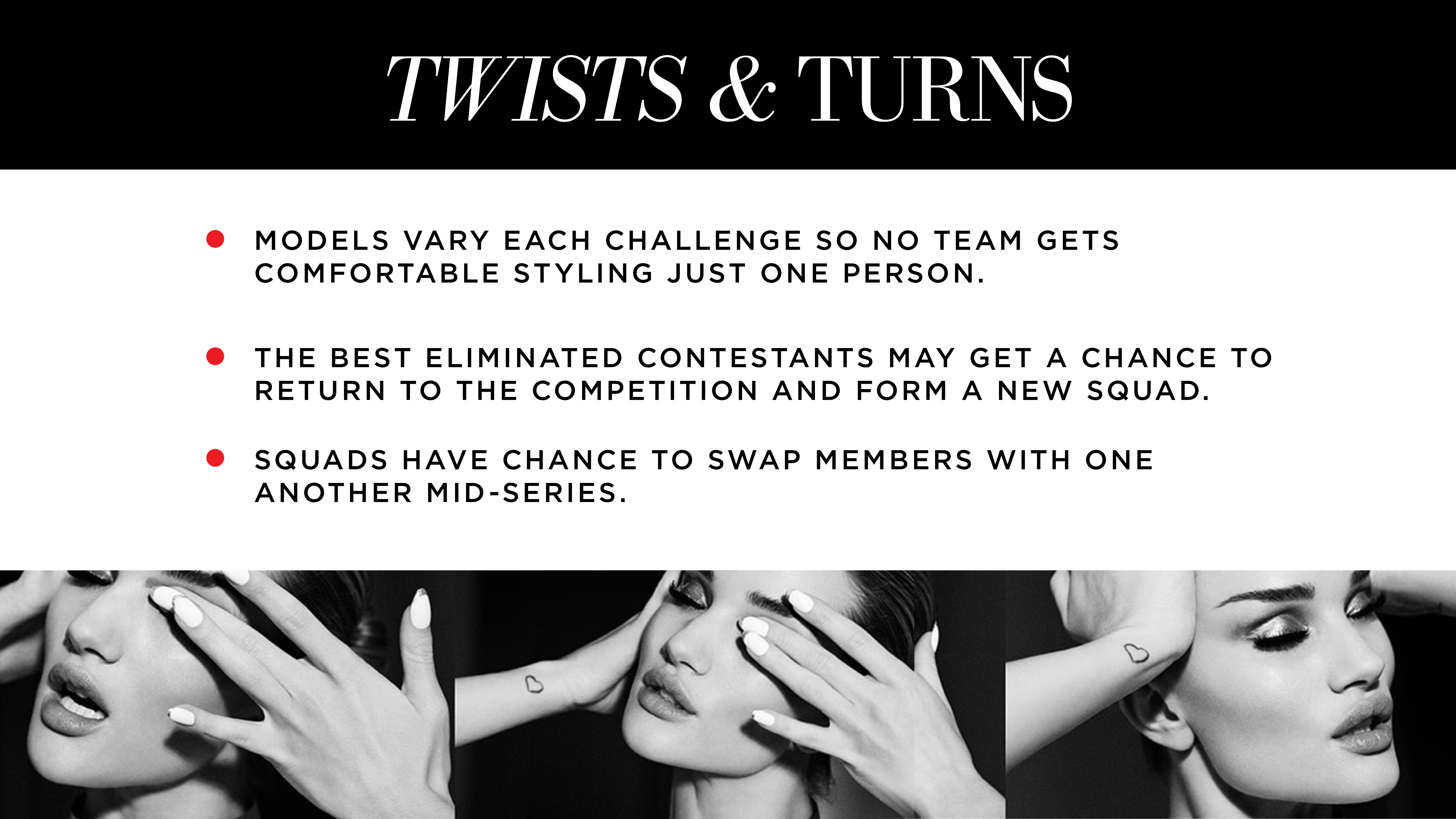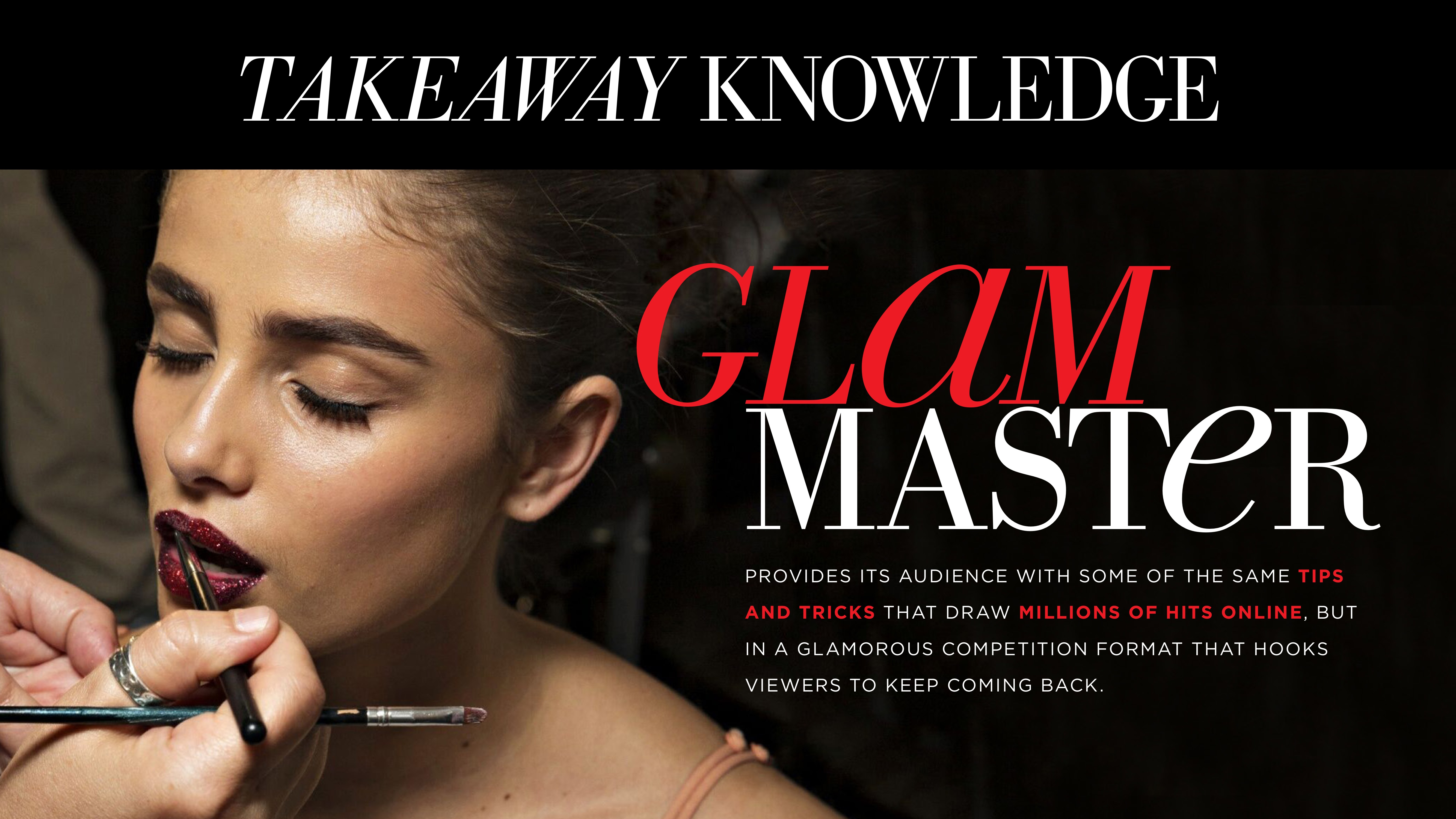 I was working on a totally different presentation and was given this immediately to design. I have the ability to change creative direction, pivot at a moments notice, to a completely different design challenge and have something ready EOD. Thus, I was responsible for the fashion magazine inspired presentation design for the original ‘Glam Masters’ pitch deck that was utilized by Asylum Entertainment development teams to successfully sell the show to A&E Television Networks which eventually lead to the full production of Lifetime’s Glam Masters series.