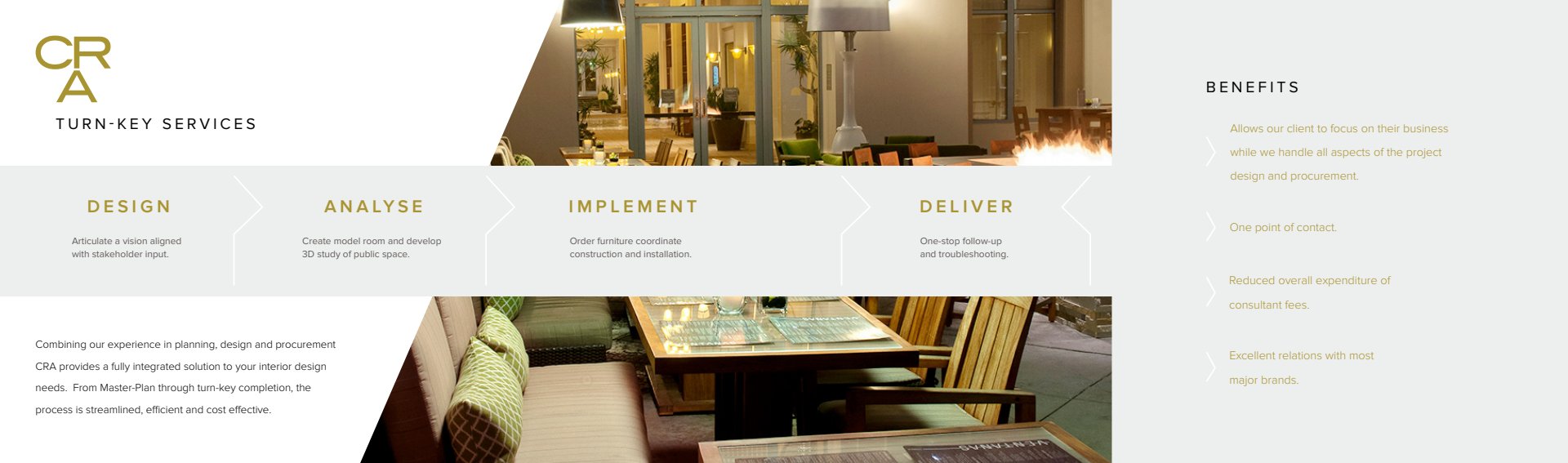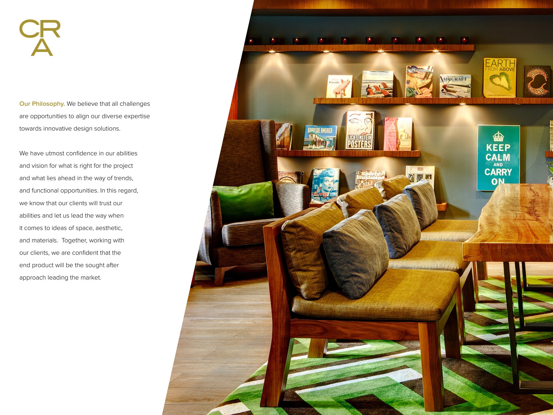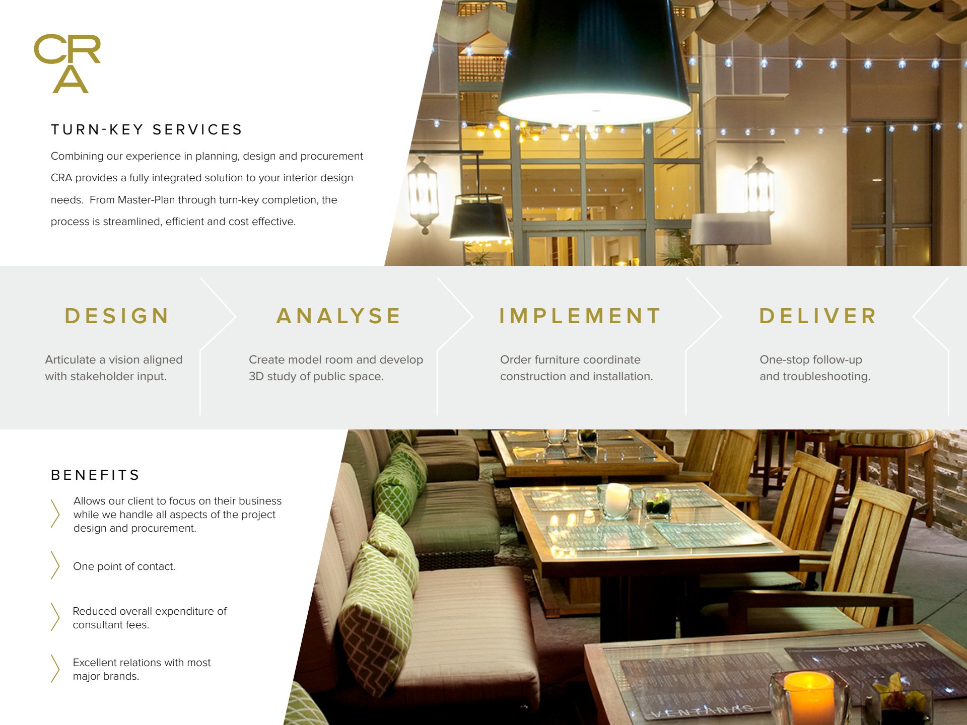 I was hired to explore redesign of Creative Resource Associates, a renowned interior design firm in Woodland Hills, and the owners of the company loved my direction that I completed a full brochure redesign for the client.