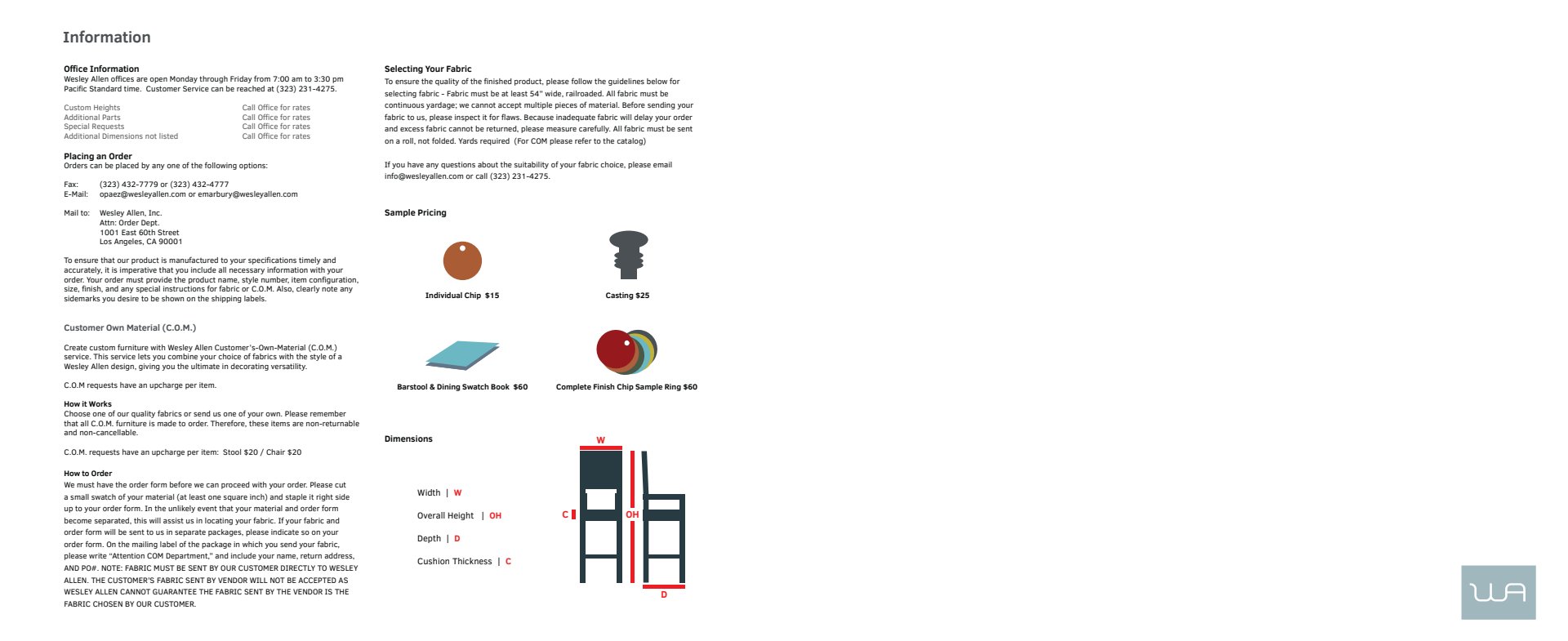 Their information and order guides were difficult to understand, so I improved the way the SKU/Options were laid out, in a more clear, hierarchical-flow of information. I also designed and developed on the fly, an iconographic solution to their Sample Pricing and Dimensions sections.